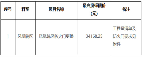 遵義市第一人民醫院鳳凰院區防火門更換采購公告(工程)